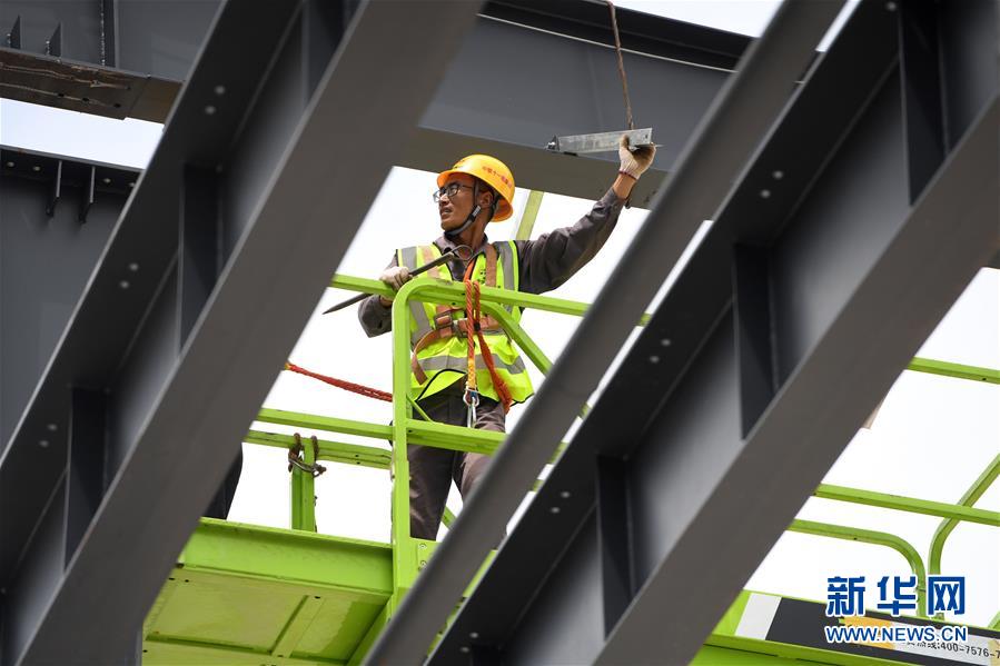 6月9日,工人在位于重慶市巴南區(qū)的渝湘高鐵重慶段建設(shè)工地現(xiàn)場(chǎng)作業(yè)。