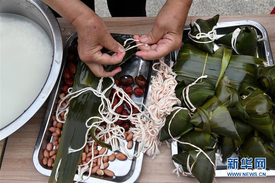 6月17日,水清溝街道居民在社區(qū)廣場(chǎng)上包粽子。當(dāng)日,青島市北區(qū)水清溝街道開展迎端午鄰里愛心傳遞進(jìn)網(wǎng)格活動(dòng),居民通過包粽子、吃粽子、網(wǎng)上端午傳統(tǒng)文化課等形式傳遞鄰里愛心,傳承民俗文化。新華社記者 李紫恒 攝