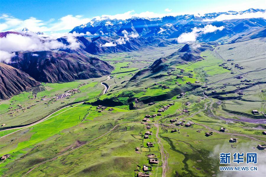 俯瞰丁青縣色扎鄉(xiāng)卡通村(6月14日攝,無人機照片)。