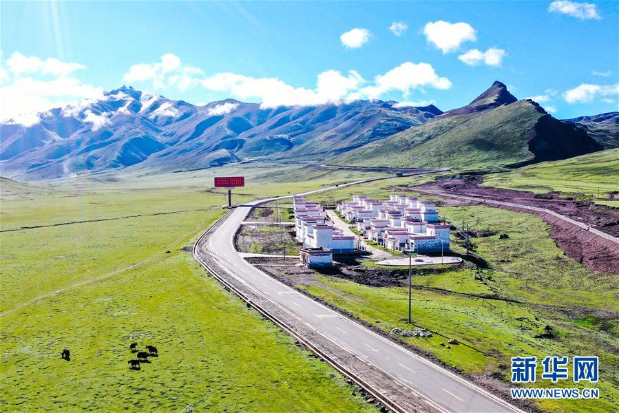 位于丁青縣嘎曲河畔的尺牘鎮(zhèn)易地扶貧搬遷點(6月14日攝,無人機(jī)照片)。新華社記者 白少波 攝