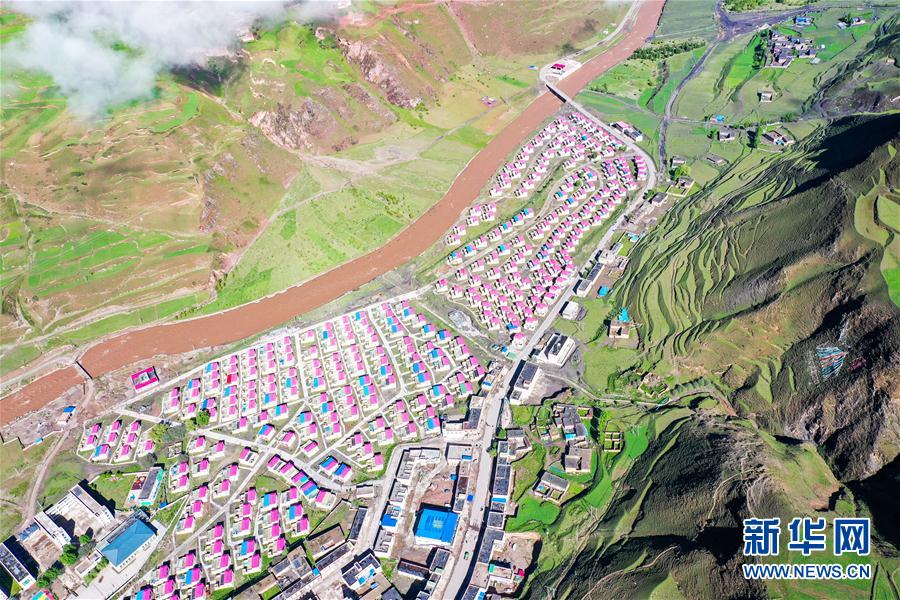 位于丁青縣嘎曲河畔的尺牘鎮(zhèn)易地扶貧搬遷點(diǎn)(6月14日攝,無人機(jī)照片)。新華社記者 田金文 攝