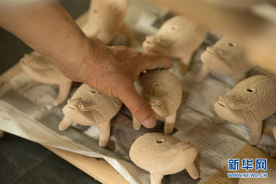 6月17日,在位于浙江慈溪的工作室,聞長(zhǎng)慶查看一件素?zé)蟮捏蛤艹幍?。新華社記者 翁忻旸 攝