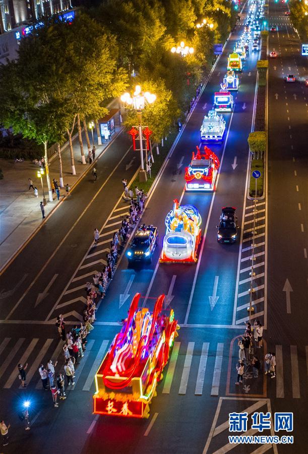 6月19日,花車在長春市人民大街上巡游。新華社記者張楠攝