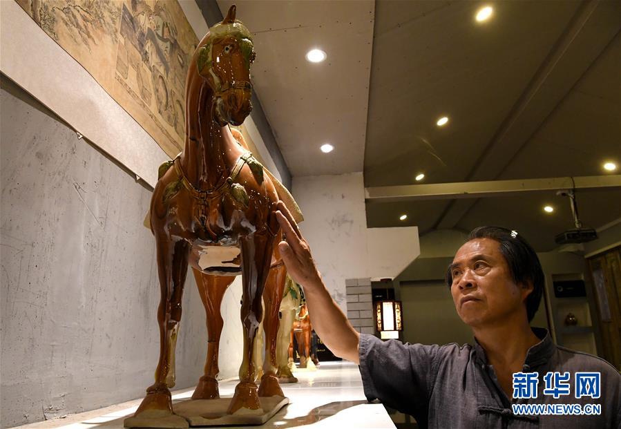 游光明的家鄉(xiāng)鞏義市就是著名瓷窯鞏縣窯的所在地,這里也是已發(fā)現(xiàn)的燒造唐三彩的最主要窯址?!办柨h窯始燒于隋,盛于唐,是我國北方最早燒造白瓷的主要窯口,隋代燒制青瓷,唐代以三彩為主,并孕育了唐青花,創(chuàng)燒了絞胎瓷等等?!弊孕【蛯Υ善鳠朴兄鴿夂衽d趣的游光明講起鞏縣窯的歷史如數(shù)家珍。