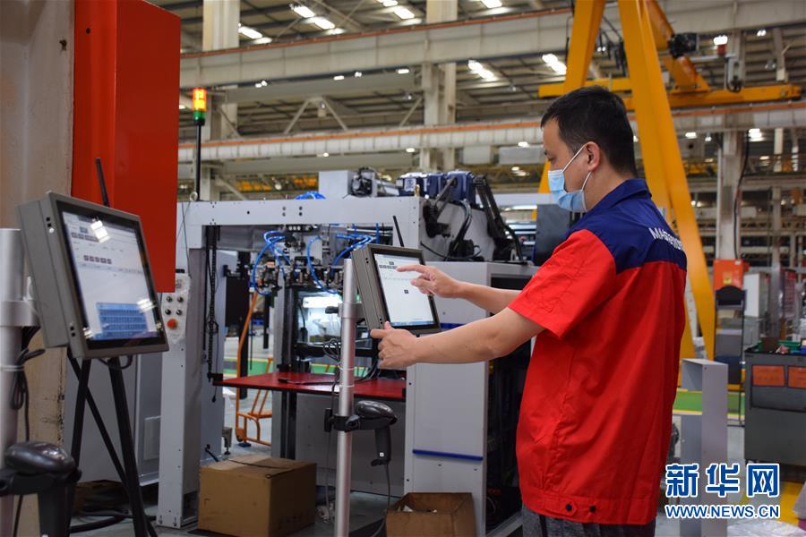 天津長(zhǎng)榮科技集團(tuán)股份有限公司的工人在查看生產(chǎn)情況(6月18日攝)。新華社記者白佳麗攝