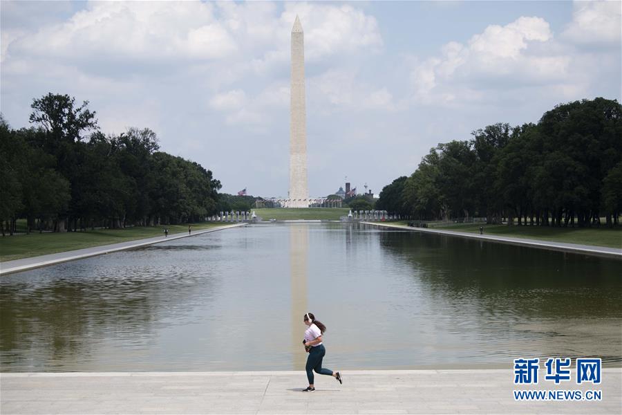 6月22日,在美國首都華盛頓,一名女子在華盛頓紀(jì)念碑附近跑步。美國約翰斯·霍普金斯大學(xué)22日發(fā)布的新冠疫情最新統(tǒng)計數(shù)據(jù)顯示,美國累計死亡病例超過12萬例。新華社記者劉杰攝