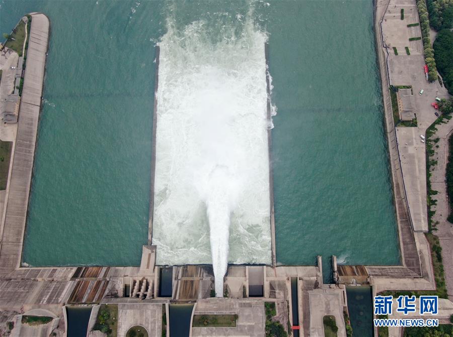 這是6月23日拍攝的黃河小浪底水利樞紐工程(無人機照片)。近日,黃河小浪底水利樞紐工程開啟洪水調度運用模式,從空中俯瞰,蔚為壯觀。新華社記者郝源攝