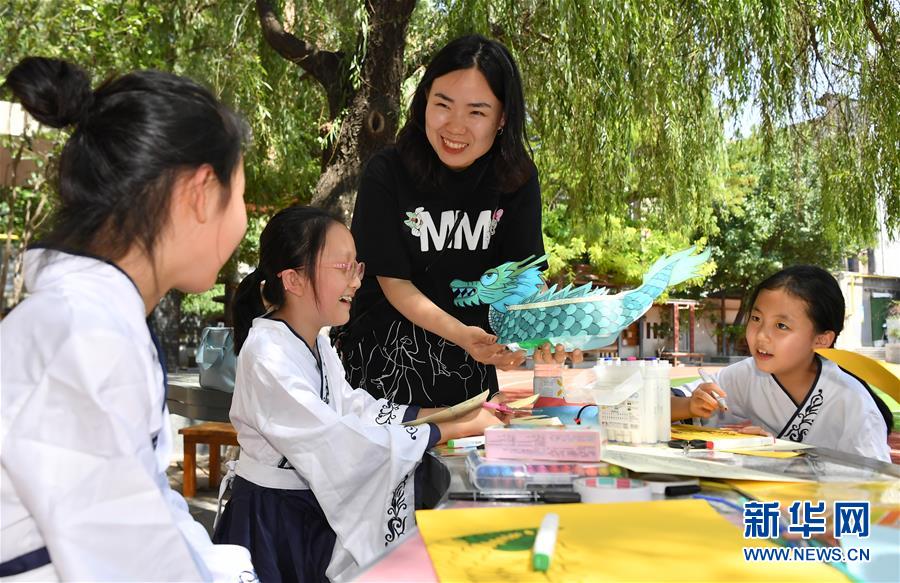 6月24日,西安市新城區(qū)后宰門(mén)小學(xué)的老師指導(dǎo)學(xué)生制作紙質(zhì)龍舟模型。端午節(jié)臨近,各地舉行包粽子、做香包、賽龍舟等豐富多彩的民俗文化活動(dòng),迎接傳統(tǒng)佳節(jié)的到來(lái)。新華社記者劉瀟攝