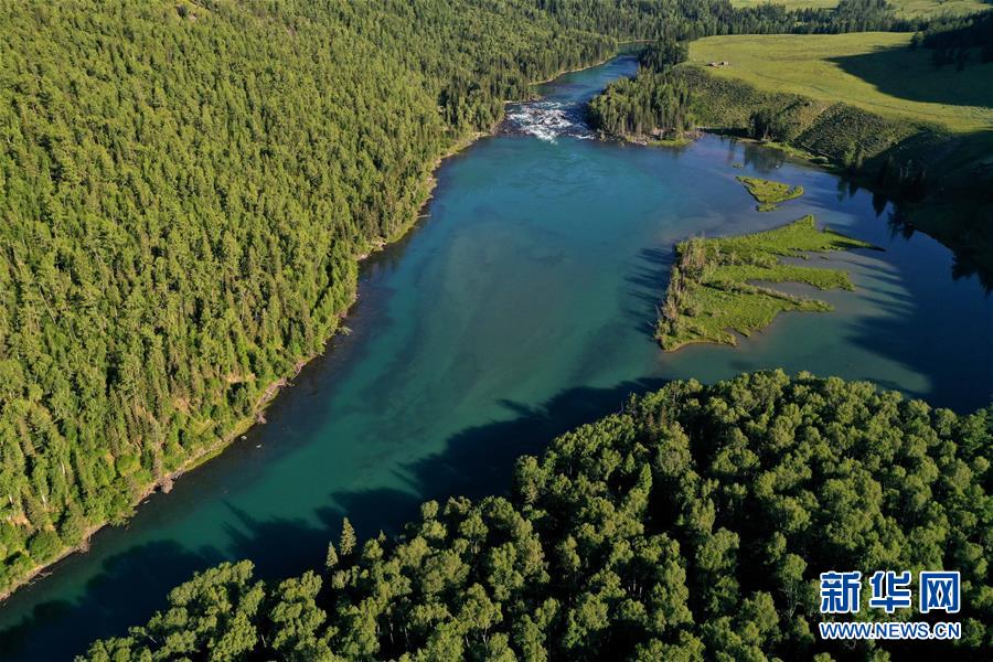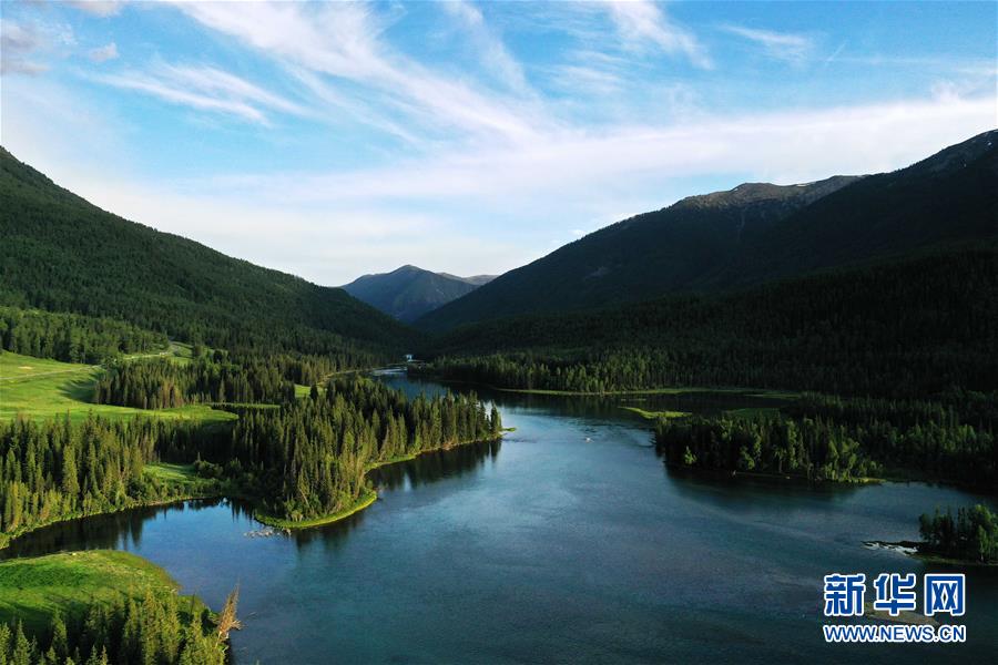 這是6月25日拍攝的新疆喀納斯景區(qū)風(fēng)光(無(wú)人機(jī)照片)。新華社記者 沙達(dá)提 攝