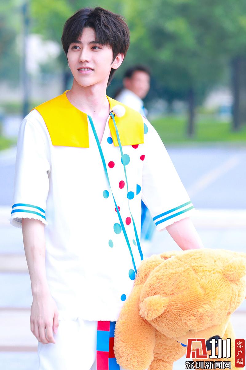 蔡徐坤穿白色波點裝帥氣陽光。