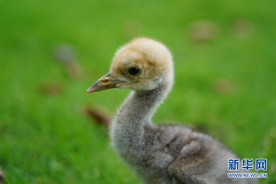 6月29日拍攝的蓑羽鶴寶寶。新華社記者周密攝