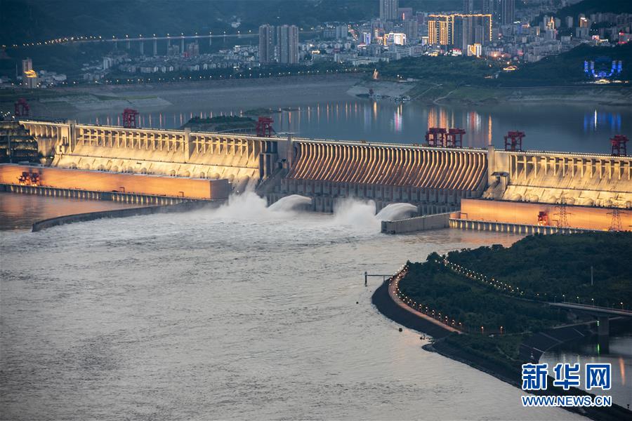 6月29日,三峽樞紐開啟泄洪孔泄洪。受長江中上游強降雨影響,進入三峽水庫的水量持續(xù)增多。為騰出一定庫容迎接近期可能到來的洪水,三峽樞紐于6月29日上午開啟兩個泄洪孔,加大下泄流量。這是三峽樞紐今年首次泄洪。28日14時,三峽水庫入庫流量達4萬立方米/秒,是27日14時的兩倍。為應對此輪來水,長江防總要求將三峽水庫下泄流量上調(diào)至日均3.5萬立方米/秒。新華社發(fā)(鄭家裕攝)