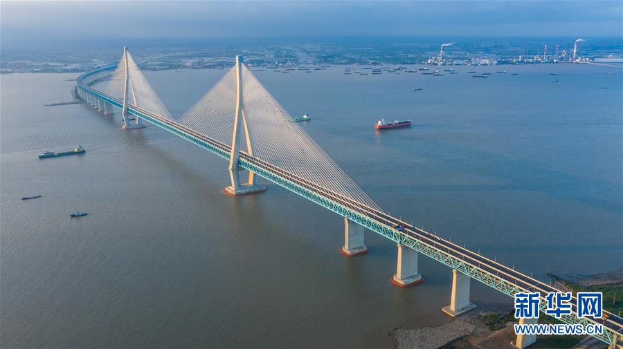 滬蘇通長(zhǎng)江公鐵大橋(6月29日攝,無(wú)人機(jī)照片)。即將于7月1日通車的滬蘇通長(zhǎng)江公鐵大橋北起江蘇南通,南至江蘇張家港,公鐵合建跨江正橋全長(zhǎng)5827米,為集合高速公路、客貨混線鐵路、高速鐵路的“三合一”過(guò)江通道,建成通車后將有效促進(jìn)長(zhǎng)三角城市群跨江融合、協(xié)同發(fā)展。新華社記者李博攝