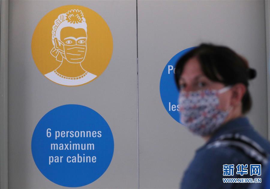 7月1日,法國(guó)巴黎蓬皮杜藝術(shù)中心的電梯上貼著“請(qǐng)佩戴口罩”和“最多6人乘梯”的標(biāo)識(shí)。因新冠疫情關(guān)閉的法國(guó)巴黎蓬皮杜藝術(shù)中心于7月1日重新開門迎客。目前,中心只開放6層的臨時(shí)展區(qū)和4、5層的現(xiàn)代藝術(shù)常設(shè)展區(qū)。參觀者需提前網(wǎng)上預(yù)約參觀時(shí)段,11歲以上參觀者須佩戴口罩,參觀過(guò)程中保持安全距離。新華社記者高靜攝