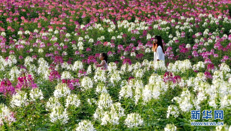 7月1日,市民在位于留壩縣城的金水灣花海游玩。近日,陜西省漢中市留壩縣金水灣花海的各類鮮花次第綻放,絢麗繽紛。新華社記者劉瀟攝