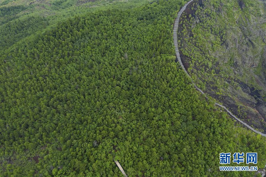 這是7月3日拍攝的五大連池風景區(qū)(無人機照片)。 時下,五大連池風景區(qū)內植被蔥蘢,在火山、熔巖臺地、火山堰塞湖的映襯下,景色壯美。 五大連池風景區(qū)位于黑龍江省黑河市,是較為典型和完整的近代火山噴發(fā)遺跡,被喻為“天然的火山博物館”。 新華社記者 謝劍飛 攝