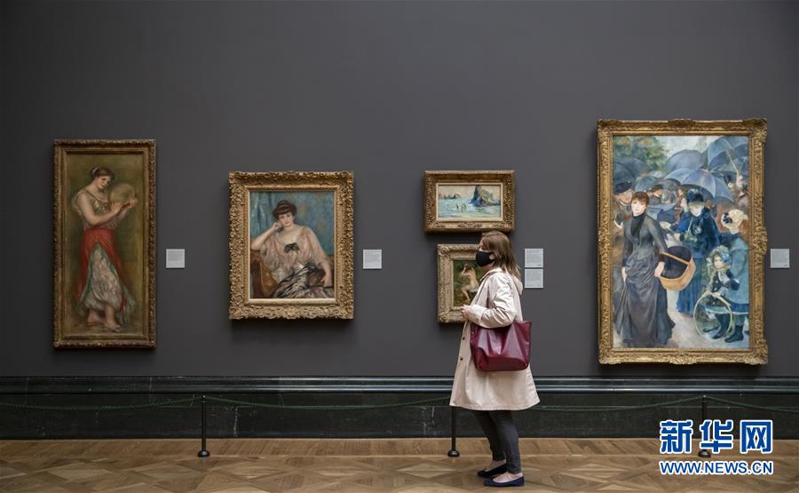 7月4日,參觀者佩戴口罩在英國國家美術(shù)館的媒體開放日上參觀。新華社記者韓巖攝