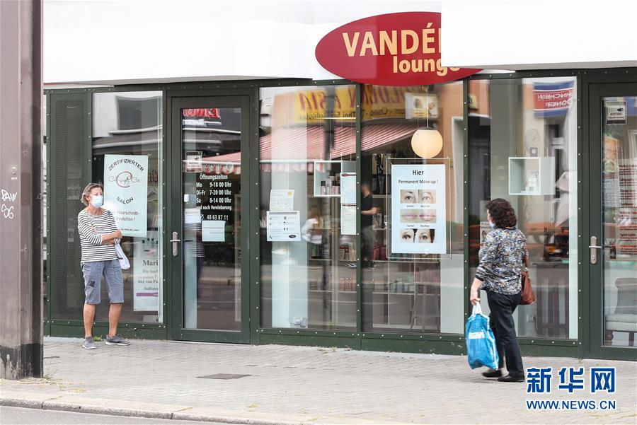7月7日,一名佩戴口罩的女子(左)等待進(jìn)入德國首都柏林的一家理發(fā)店。針對有地方官員呼吁取消民眾乘坐公交車和在商場購物時須戴口罩的規(guī)定,德國聯(lián)邦政府6日表示,支持延續(xù)“口罩強(qiáng)制令”。4月底,德國全部16個聯(lián)邦州陸續(xù)出臺“口罩強(qiáng)制令”,即居民在乘坐公交車和購物時須佩戴口罩。新華社記者單宇琦攝