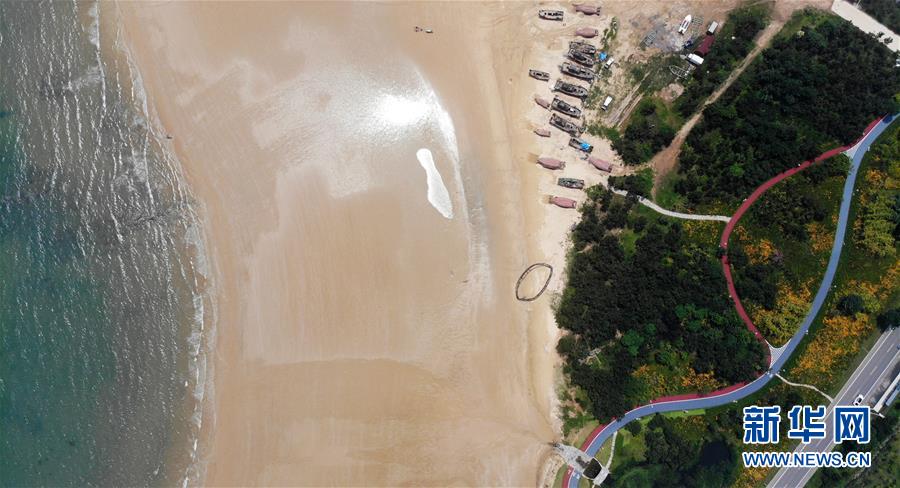 7月7日拍攝的緊靠海岸線的日照陽(yáng)光海岸綠道(無(wú)人機(jī)照片)。新華社記者王凱攝