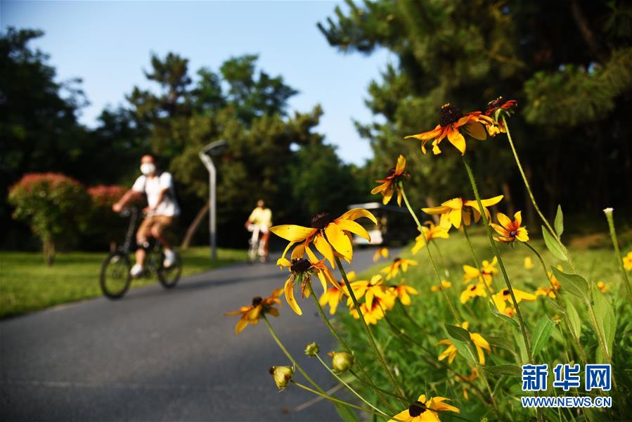 7月7日,市民在日照陽(yáng)光海岸綠道騎行。新華社記者王凱攝