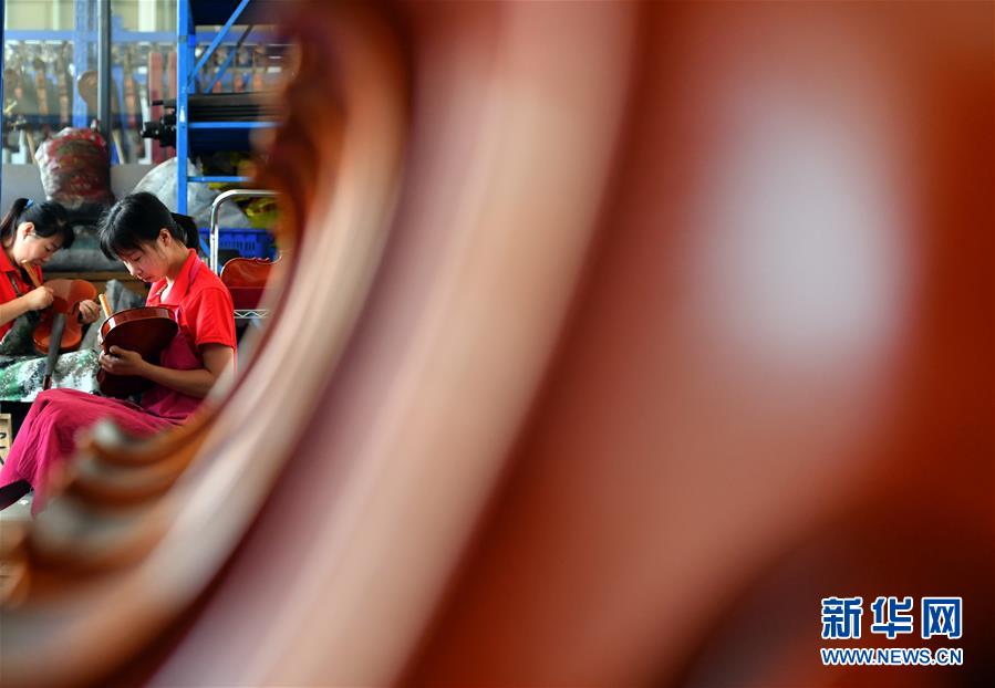 工人在河南駐馬店市確山縣提琴產(chǎn)業(yè)園提琴生產(chǎn)車(chē)間工作(7月3日攝)。新華社記者李嘉南攝