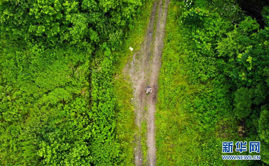 7月8日,董紅雨在迎春林業(yè)局有限公司施業(yè)區(qū)內(nèi)進行野生東北虎信息搜集和巡護工作(無人機照片)。