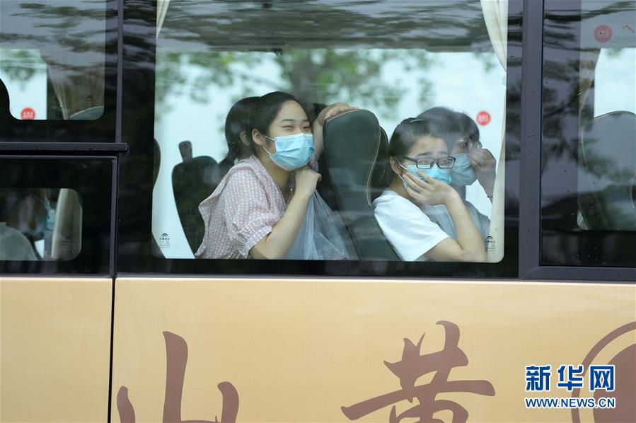 7月9日,考生乘坐大巴車抵達歙縣第二中學考點。受強降雨影響,2020年高考安徽歙縣考區(qū)7月7日未能如期開考,經(jīng)研究并報教育部批準,歙縣考區(qū)于9日啟用2020年普通高等學校招生全國統(tǒng)一考試語文、數(shù)學(文、理)科目副題進行考試。新華社記者黃博涵攝