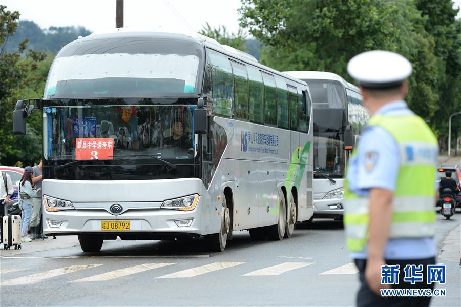 7月9日,接送考生的大巴車抵達(dá)歙縣第二中學(xué)考點(diǎn)。受強(qiáng)降雨影響,2020年高考安徽歙縣考區(qū)7月7日未能如期開考,經(jīng)研究并報(bào)教育部批準(zhǔn),歙縣考區(qū)于9日啟用2020年普通高等學(xué)校招生全國(guó)統(tǒng)一考試語(yǔ)文、數(shù)學(xué)(文、理)科目副題進(jìn)行考試。新華社記者黃博涵攝