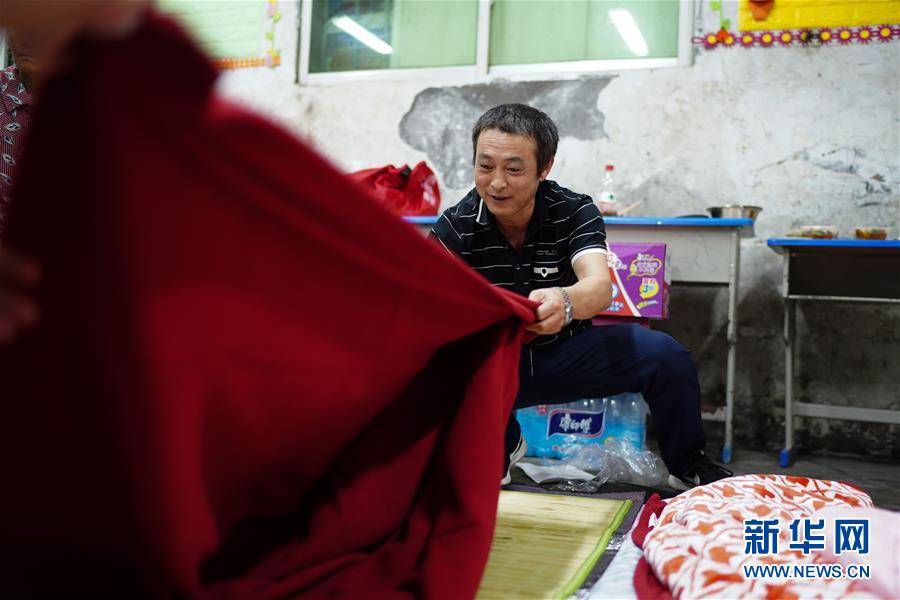 7月9日,在教室安置的村民將剛剛得到的寢具鋪在地上準(zhǔn)備睡覺。當(dāng)日,江西鄱陽縣鄱陽鎮(zhèn)因洪水受災(zāi)的村民被轉(zhuǎn)移到多個集中安置點(diǎn)。在鄱陽縣五一中心學(xué)校安置點(diǎn),志愿者和工作人員接到任務(wù)后不到十小時內(nèi),為被轉(zhuǎn)移村民布置了28間教室,供519人安頓,并為村民發(fā)放褥子、床單、枕頭、盒飯、飲用水等物資。新華社記者周密攝