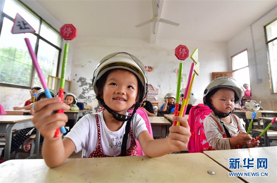 7月11日,小朋友們在交通安全知識課上學(xué)習(xí)。當(dāng)日,廣西柳州市交警支隊的民警來到融水苗族自治縣大浪鎮(zhèn)大新村紅鄧屯教學(xué)點,開展暑期交通安全教育活動,增強孩子們的安全出行意識。新華社記者黃孝邦攝