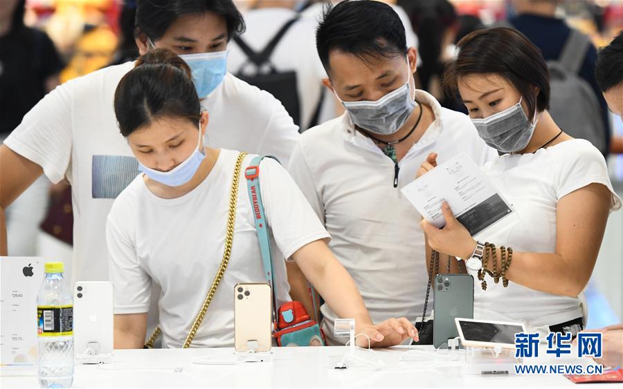 7月12日,游客在??谌赵聫V場(chǎng)免稅店選購(gòu)電子產(chǎn)品。