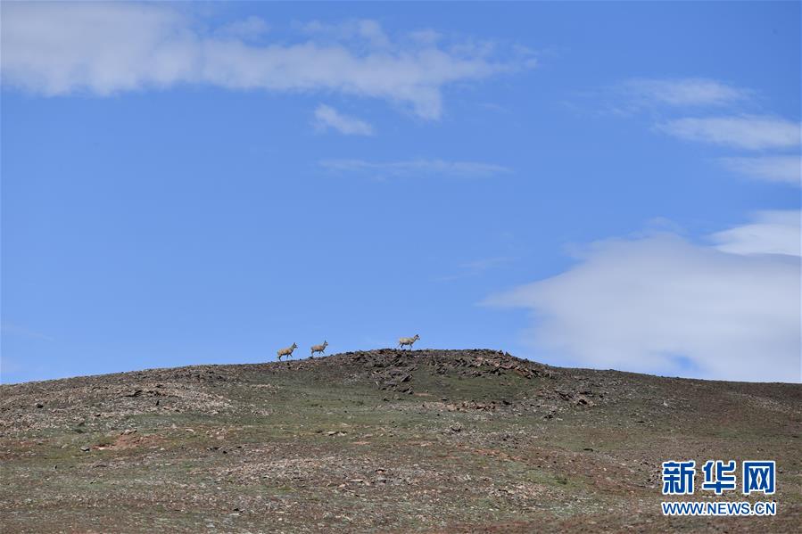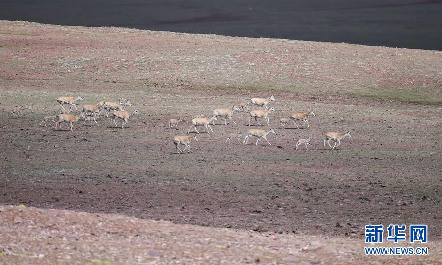 7月7日在可可西里卓乃湖區(qū)域拍攝的藏羚羊。目前正值藏羚羊產(chǎn)仔季。來自青海三江源、新疆阿爾金山、西藏羌塘等地的藏羚羊來到位于青海省可可西里腹地、被譽(yù)為“藏羚羊大產(chǎn)房”的卓乃湖區(qū)域產(chǎn)仔。新華社記者 張龍 攝