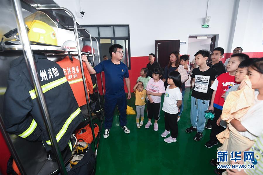7月16日,東林鎮(zhèn)消防綜合應(yīng)急救援隊隊員在給學(xué)生們介紹消防服及消防器材。當(dāng)日,浙江省湖州市吳興區(qū)東林鎮(zhèn)舉辦暑期“安全防護小超人”主題活動?;顒佑舍t(yī)護人員、消防隊員等為學(xué)生及家長講授日常安全避險及溺水急救知識,中小學(xué)們還在現(xiàn)場學(xué)習(xí)了簡易包扎、心肺復(fù)蘇的正確方式,并了解滅火器、滅火毯等消防器材的使用,為學(xué)生平安過暑期打好安全防護“預(yù)防針”。新華社記者 徐昱 攝