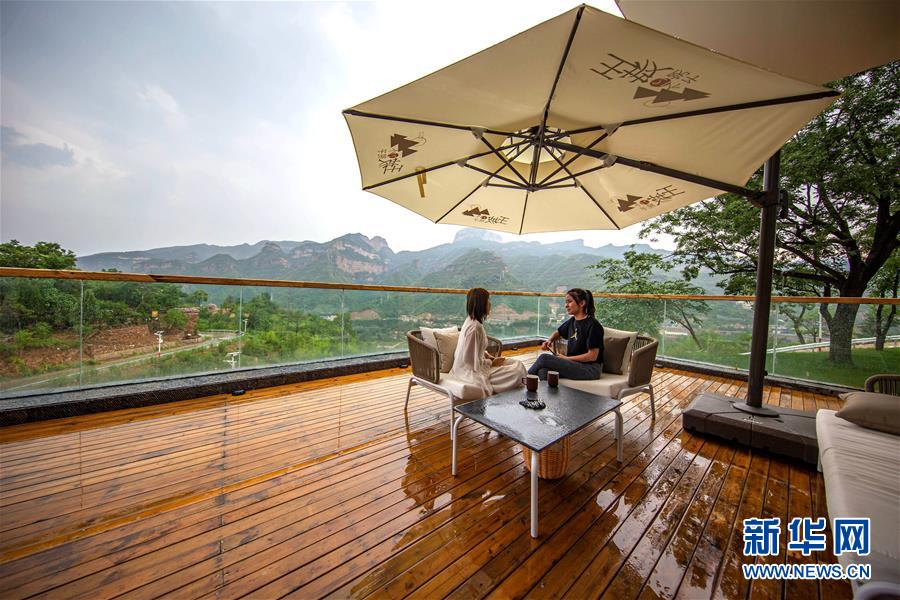 7月15日,游客在武安市活水鄉(xiāng)王坡民宿聊天。近年來(lái),河北省武安市活水鄉(xiāng)依托當(dāng)?shù)刈匀簧鷳B(tài)優(yōu)勢(shì),大力發(fā)展鄉(xiāng)村旅游,利用空閑民居打造特色鄉(xiāng)村精品民宿,為農(nóng)村發(fā)展注入新活力,助力鄉(xiāng)村振興。新華社記者 王曉 攝
