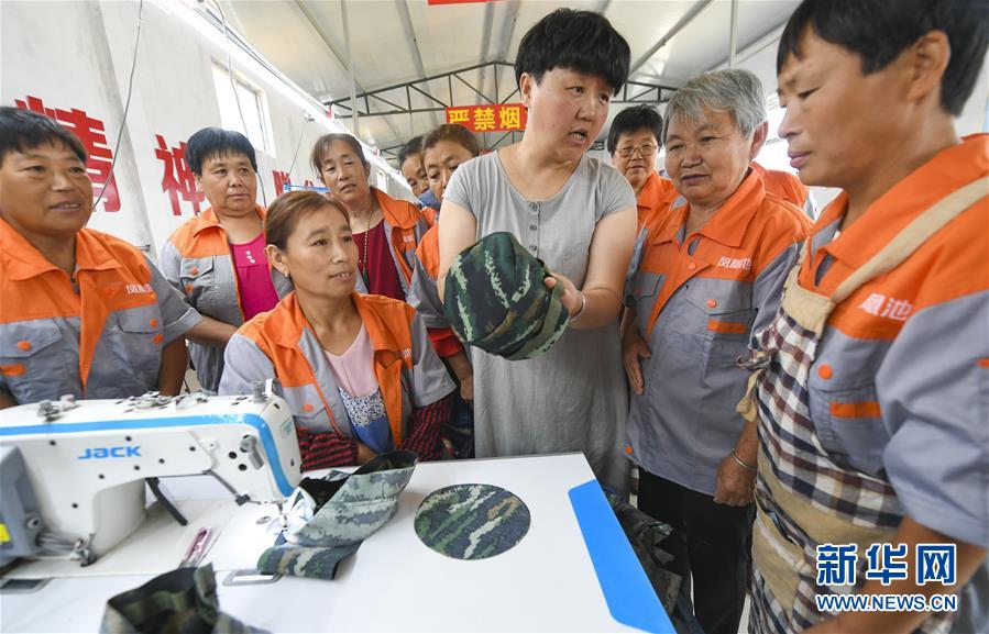 7月16日,在河北省深州市高古莊鎮(zhèn)鳳凰池村扶貧車間,馬京娜向車間工人講解技術(shù)要領(lǐng)。馬京娜是河北省深州市高古莊鎮(zhèn)鳳凰池村的致富能手。在市、鄉(xiāng)、村各級部門的大力支持下,馬京娜創(chuàng)辦扶貧車間,為建檔立卡貧困戶設(shè)立崗位,帶領(lǐng)貧困戶脫貧增收。目前,馬京娜的扶貧車間提供就業(yè)崗位30多個。新華社記者李曉果攝