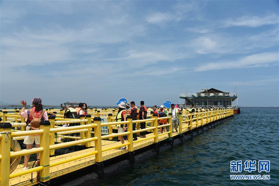 7月17日,游客在榮成桑溝灣泓泰國家級(jí)海洋牧場(chǎng)觀光體驗(yàn)。近年來,山東省榮成市重點(diǎn)發(fā)展特色海洋旅游產(chǎn)業(yè),打造眾多國家級(jí)海洋牧場(chǎng),保留修復(fù)傳統(tǒng)海草民居,吸引游客前來觀光體驗(yàn)。如今特色海洋旅游已逐漸成為榮成經(jīng)濟(jì)發(fā)展新的增長(zhǎng)點(diǎn)。新華社記者王凱攝