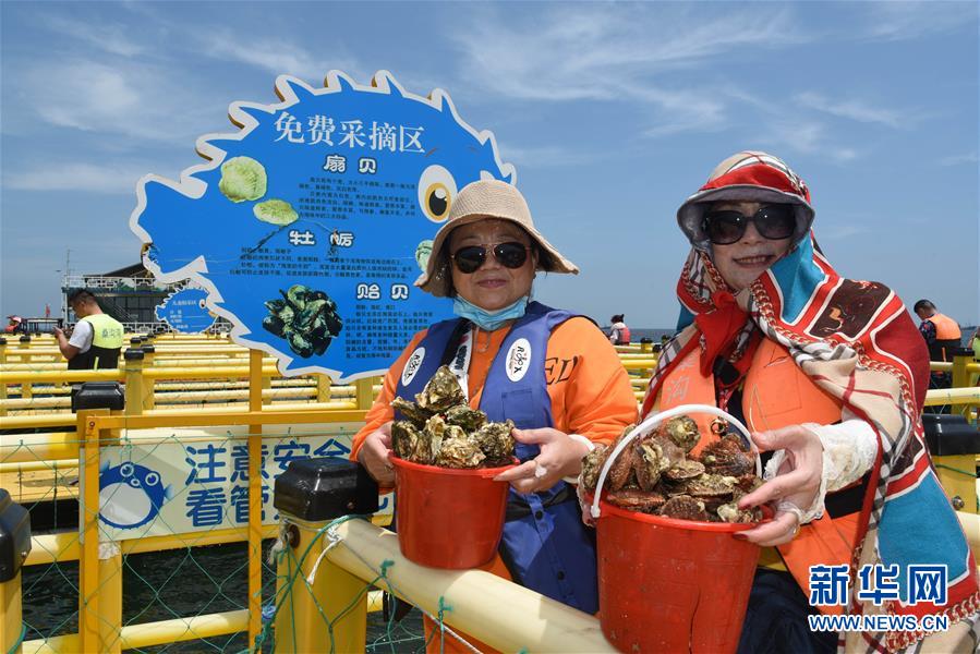 山東桑溝灣泓泰國家級海洋牧場引游客觀光