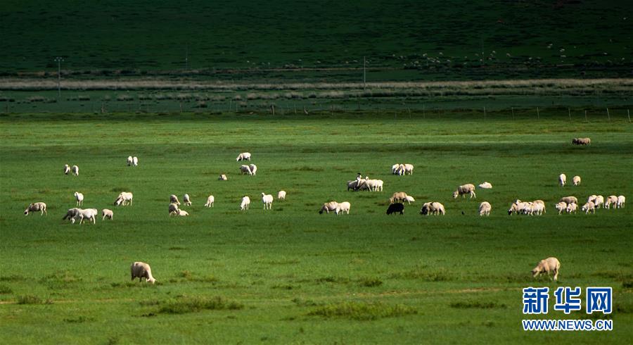 7月18日,羊群在內(nèi)蒙古錫林郭勒盟正鑲白旗境內(nèi)的草原上覓食。連日來,內(nèi)蒙古錫林郭勒盟迎來多次降雨,境內(nèi)廣袤的草原經(jīng)過雨水的滋潤,煥發(fā)出勃勃生機。新華社記者連振攝