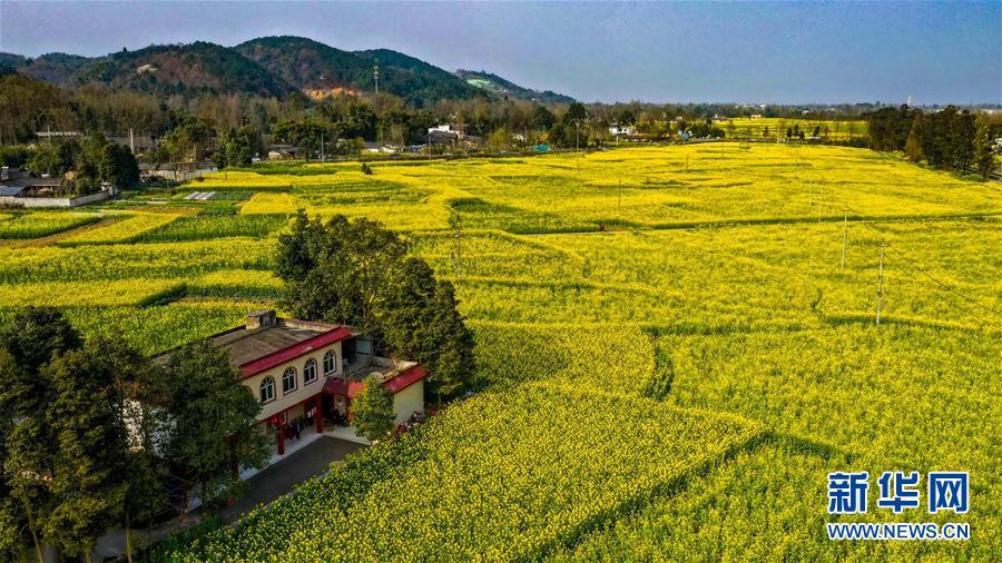 這是2月25日在四川省崇州市重慶路拍攝的油菜花田(無人機(jī)照片)。新華社記者王曦攝