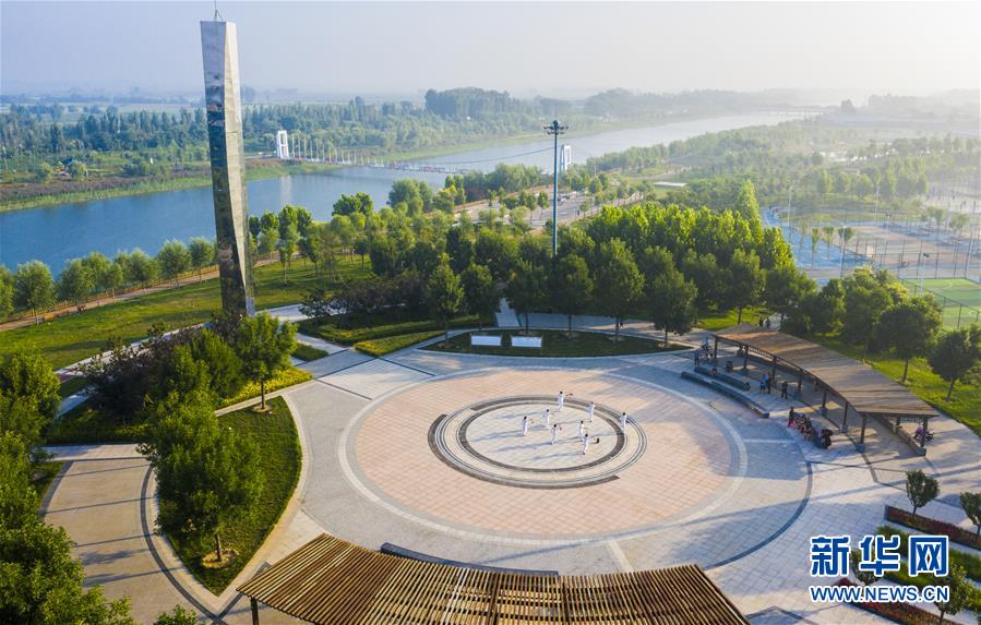 7月20日拍攝的河北省武邑縣觀津公園一角(無人機照片)。新華社記者李曉果攝