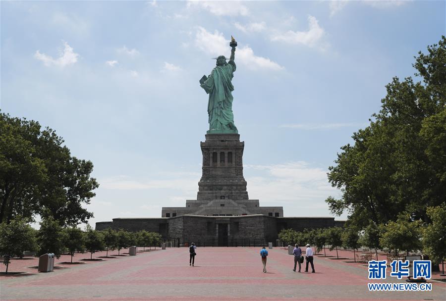 7月20日,參觀者在美國紐約自由島游覽。美國紐約市20日繼續(xù)推進經(jīng)濟重啟計劃,宣布開始進入解封新階段,進一步允許部分低風險文娛活動重啟。自由女神像所在的自由島對公眾開放,但雕像內(nèi)部和博物館仍關閉。新華社記者王迎攝