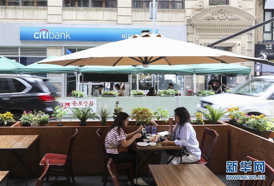 7月23日,在美國(guó)紐約,人們?cè)趹敉饩筒蛥^(qū)用餐。美國(guó)約翰斯·霍普金斯大學(xué)23日發(fā)布的新冠疫情最新統(tǒng)計(jì)數(shù)據(jù)顯示,美國(guó)累計(jì)確診病例超過400萬例。數(shù)據(jù)顯示,截至美國(guó)東部時(shí)間23日15時(shí)34分(北京時(shí)間24日3時(shí)34分),美國(guó)累計(jì)確診病例4007859例,累計(jì)死亡病例143846例。新華社記者王迎攝