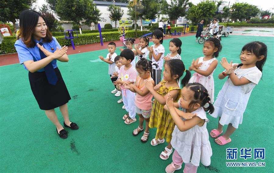 7月26日,河北省阜城縣人民檢察院工作人員在馮塔頭村給留守兒童講解自我防護知識。當(dāng)日,為關(guān)愛農(nóng)村留守兒童,河北省阜城縣人民檢察院工作人員走進阜城鎮(zhèn)馮塔頭村,開展“做自己的守護天使”主題法治教育課,幫助少年兒童從小樹立法治意識,做好自我防護。新華社記者 李曉果 攝