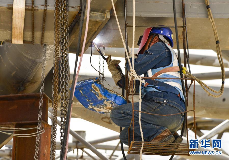 7月27日,工人在拉薩貢嘎國(guó)際機(jī)場(chǎng)T3航站樓的工地上作業(yè)。新華社記者 田金文 攝