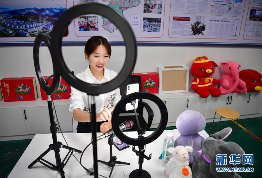 7月24日,在陜西平利縣老縣鎮(zhèn)錦屏社區(qū)一間直播間,電商主播王秀梅在推介當(dāng)?shù)禺a(chǎn)品。陜南地區(qū)地處秦巴山區(qū),是陜西脫貧攻堅(jiān)的主戰(zhàn)場。近年來,陜南各縣區(qū)因地制宜、精準(zhǔn)施策,通過發(fā)展社區(qū)工廠、特色種植、旅游扶貧、技能培訓(xùn)、電商帶貨等措施,促進(jìn)多種產(chǎn)業(yè)發(fā)展,助力農(nóng)民增收。新華社記者邵瑞攝
