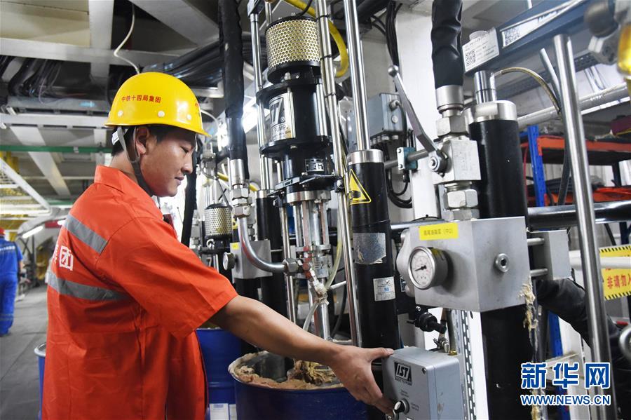 7月29日,“萬(wàn)里黃河第一隧”——濟(jì)南黃河隧道工程施工人員在施工作業(yè)。新華社記者王凱攝