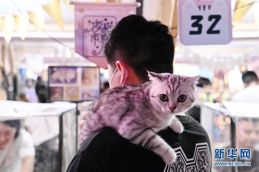 市民帶著自己的寵物貓逛“夜貓市集”(7月29日攝)。新華社記者張浩然攝