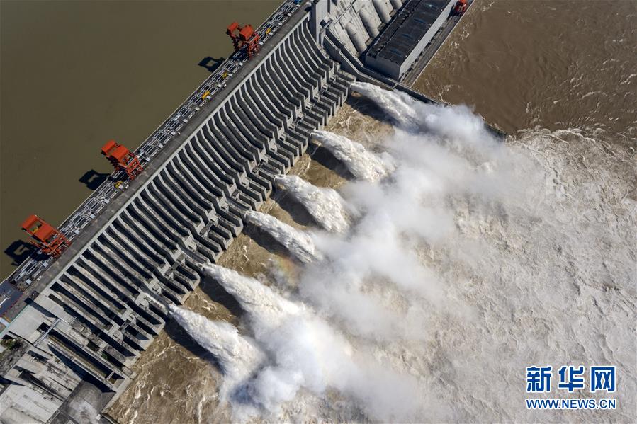 8月2日,江水通過三峽大壩下泄(無人機(jī)照片)。據(jù)水利部長(zhǎng)江水利委員會(huì)消息,7月以來,長(zhǎng)江流域共出現(xiàn)6次強(qiáng)降雨過程,長(zhǎng)江上游先后發(fā)生3次編號(hào)洪水。為減輕中下游防洪壓力,包括三峽、葛洲壩在內(nèi)的長(zhǎng)江中上游水庫(kù)群共攔洪300多億立方米。新華社記者杜華舉攝