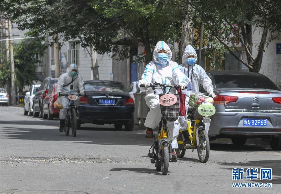 8月3日,在烏魯木齊天山區(qū)西河壩前街社區(qū),社區(qū)工作人員騎著”跑腿小車“為居民送去生活物品。新疆烏魯木齊市天山區(qū)西河壩前街社區(qū)主次干道較多,院落分布分散。新冠肺炎疫情防控期間,社區(qū)整合現(xiàn)有資源,將暫時(shí)閑置的自行車、電動(dòng)車集中起來(lái),貼上“跑腿小車”標(biāo)識(shí),成立便民服務(wù)隊(duì),社區(qū)工作人員通過(guò)“跑腿小車”可將居民網(wǎng)絡(luò)定制的“菜袋子”“藥盒子”快速送達(dá),給居民帶來(lái)方便。新華社記者趙戈攝