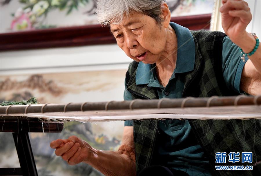 “一針一線繡人生,一心一意做好人?!痹诤幽祥_(kāi)封市素花宋繡工藝有限公司的展示館里,85歲的王素花一邊劈線一邊講述自己的故事。